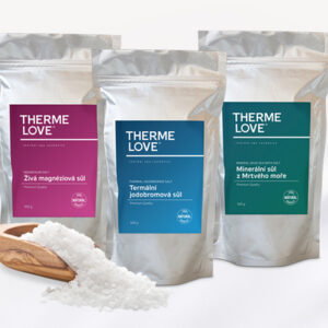 Koupelové soli THERMELOVE jsou 100% přírodní přírodní produkty nejvyšší kvality s vysokým obsahem minerálních látek. Příznivě působí na pokožku s kožními problémy. Jsou vhodné také k relaxaci svalů a při problémech s pohybovým aparátem. Blahodárně přispívají k celkovému zklidnění těla i duše. Zakoupíte na www.lovespa.cz.