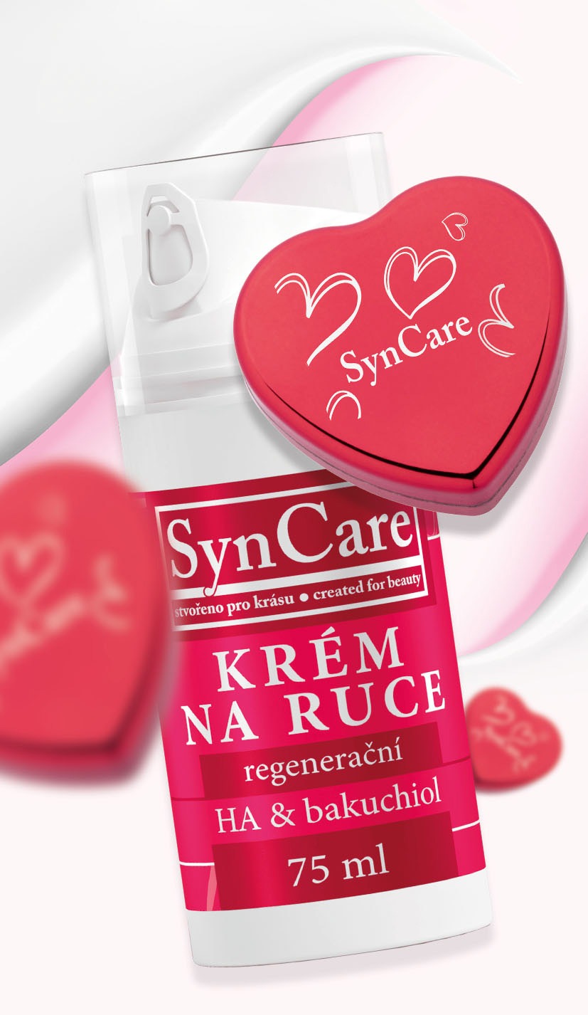 Jemný jako pohlazení je SynCare krém na ruce, nyní ve valentýnské kolekci s balzámem na rty v srdíčku se zrcátkem. Přinášejí ochranu a péči rtům i pokožce, které hydratují a krásně vyhladí.